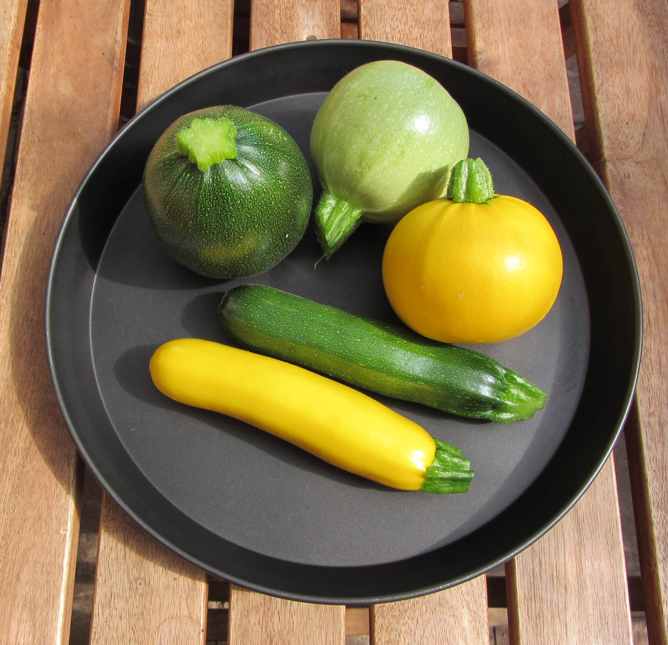 Zucchini, am besten in verschiedenen Farben, dunkelgrün, hellgrün und gelb
